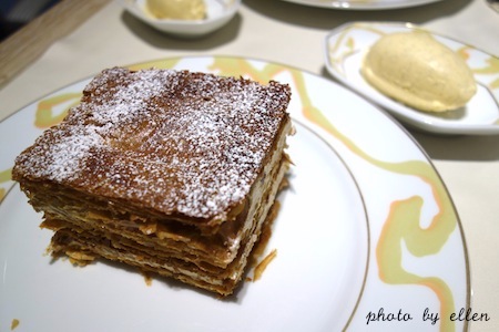 詢問侍者我可不可以點千層派, 然後吃不完打包半份走