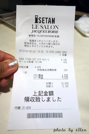 帳單來了: 日幣4400円+10%服務費和稅, 總共 4839円