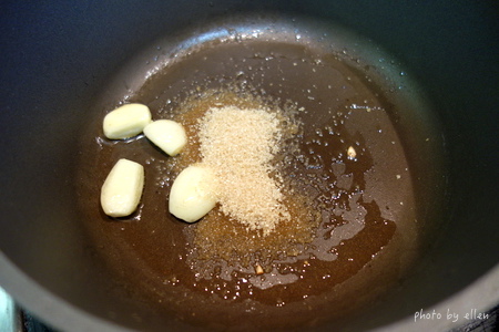 我先加兩匙糖炒香, 沒有炒到焦化, 只是炒香而已