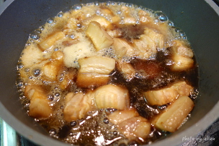 煎到兩面帶點金黃色, 看你是想要滷肉有哪種口感, 想要Q一點的請煎久一點, 想要嫩一點的請煎到剛剛變金黃色就拿出來