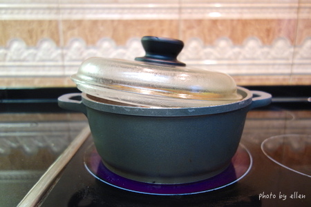 鍋蓋留點縫隙, 用中小火煮 (電陶爐3-4+外圍)